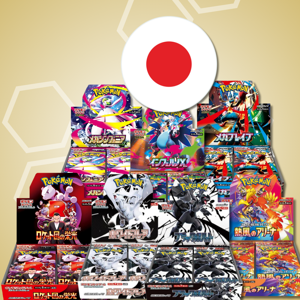 Entdecke jetzt unsere exklusiven japanischen Booster-Bundles: Trainer-Starter, Arenaleiter-Starter & Top-Vier-Starter!Jedes Bundle enthält...