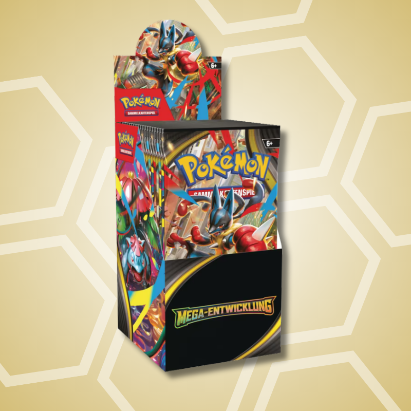 • 18 originale Booster Packs der Sammelkartenspielerweiterung “Mega Entwicklung”
